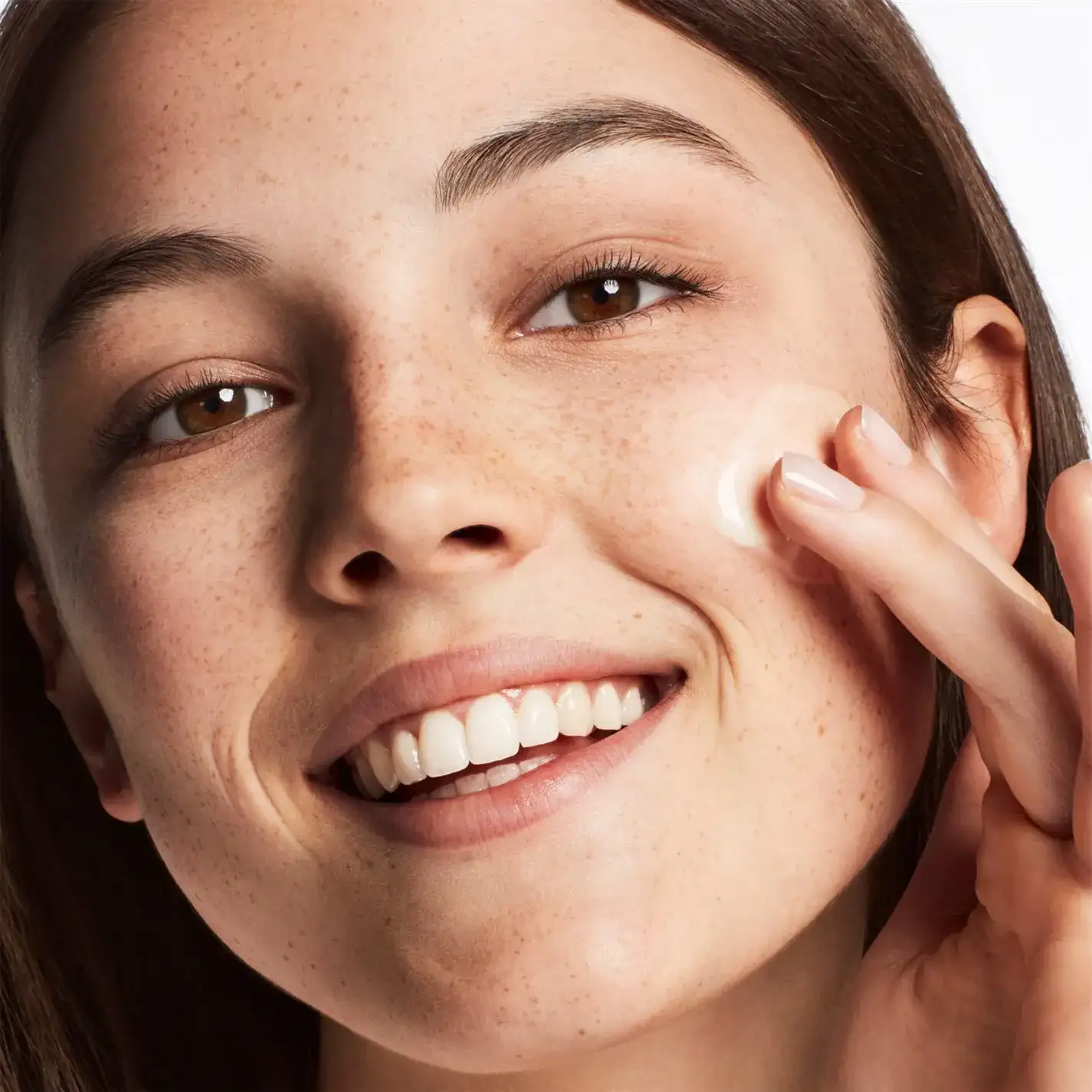 مقدار مناسبی از کرم ژل آبرسان کلینیک را روی انگشتان گذاشته و بهصورت یکنواخت روی صورت و گردن پخش کنید.